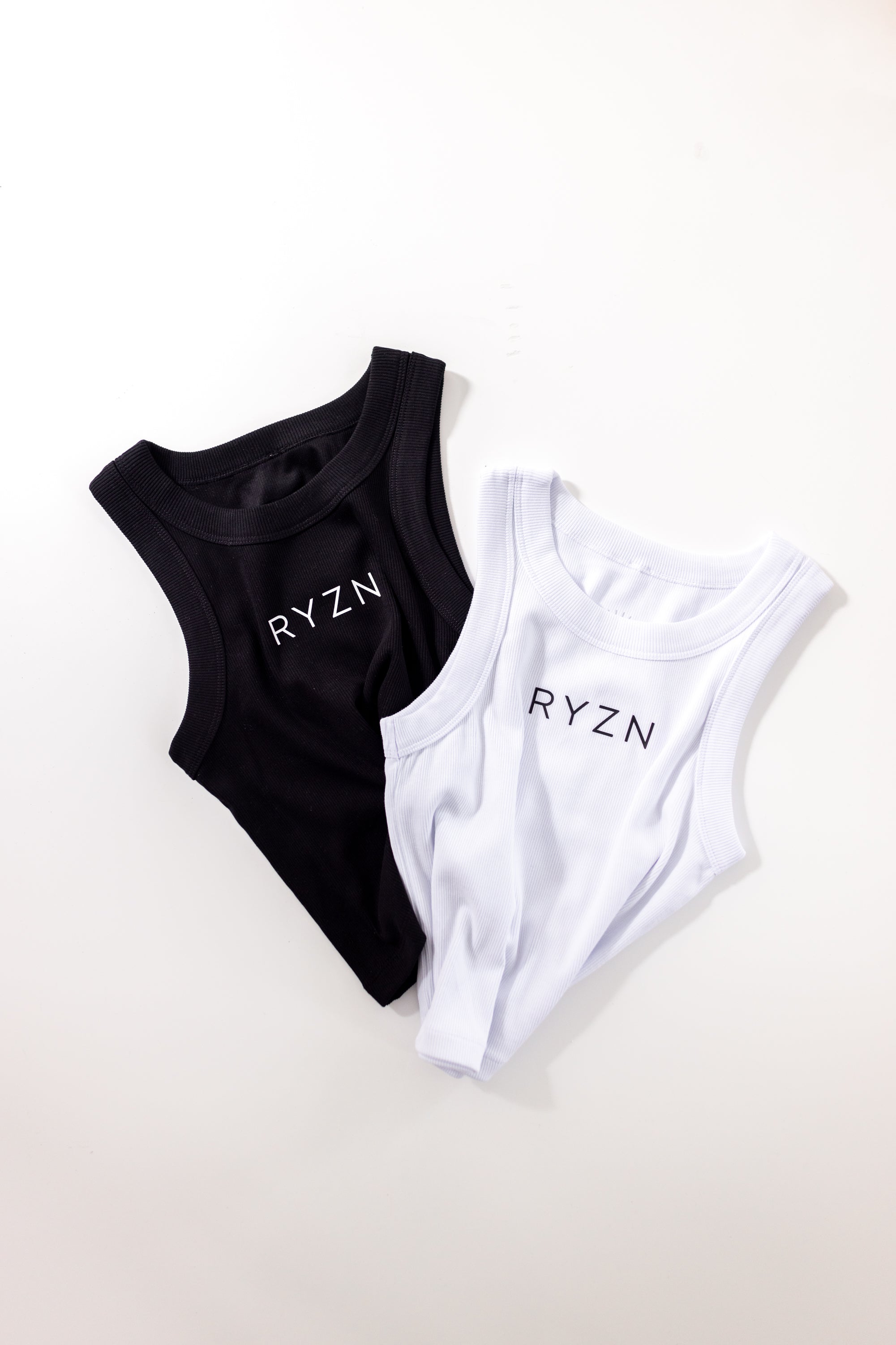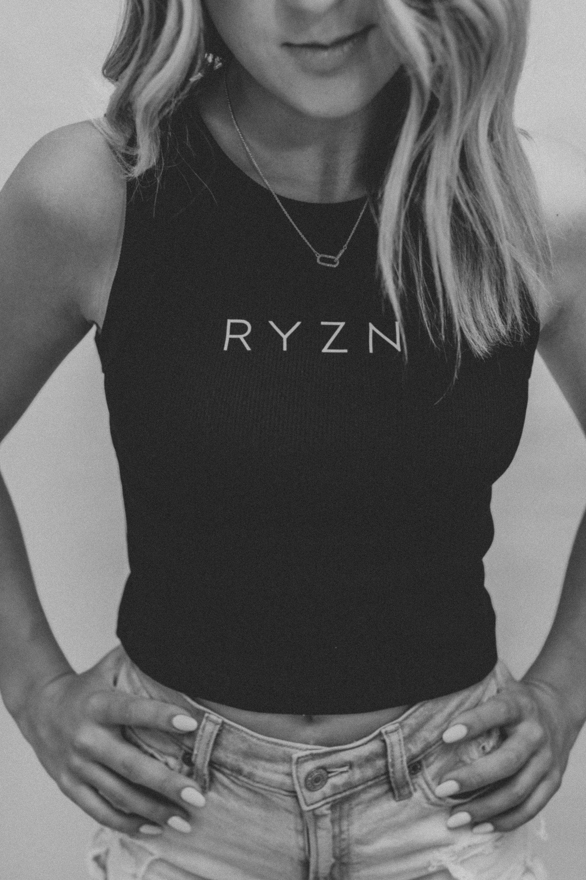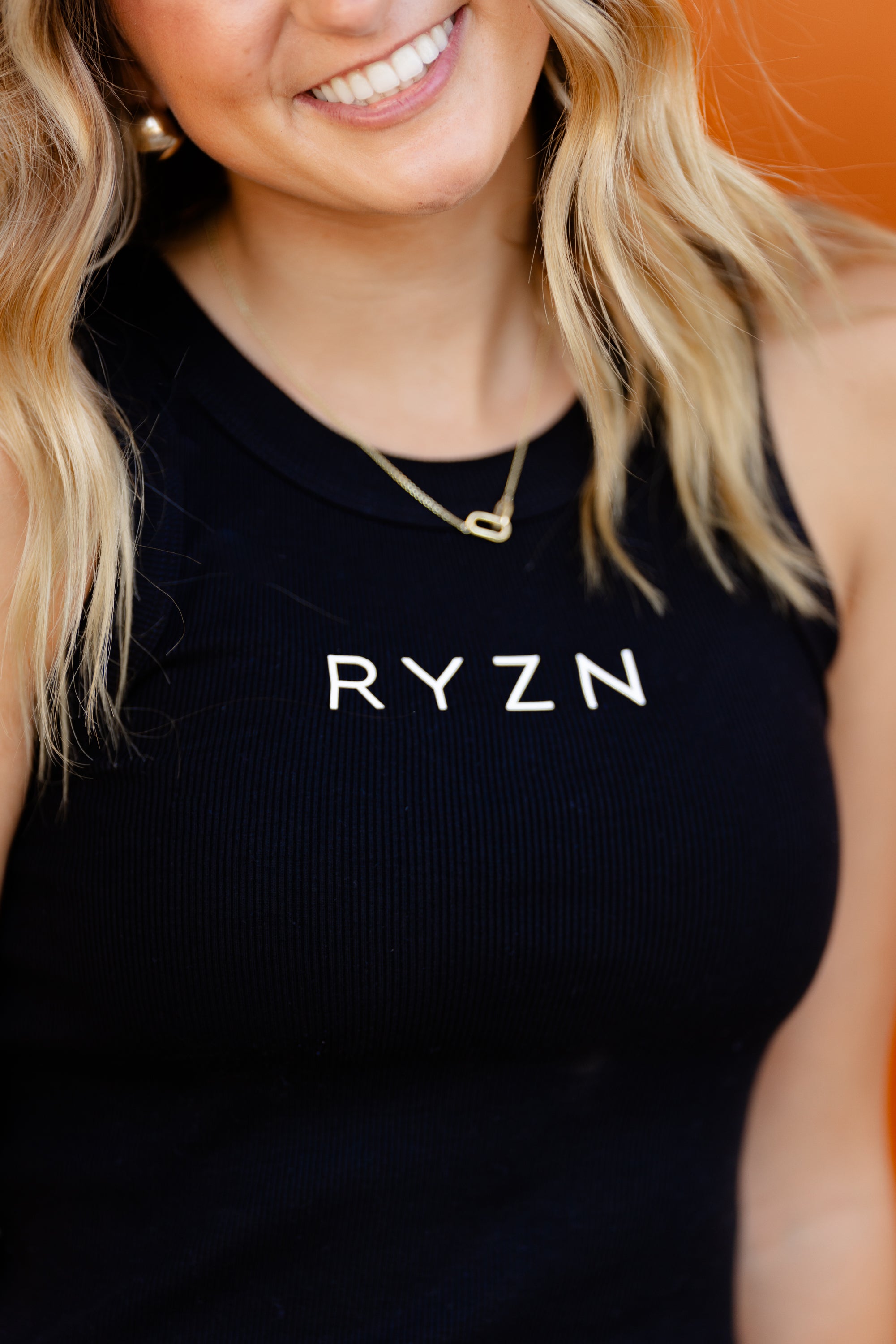 This black crop tank hugs just right, with a clean RYZN logo up front and all-day comfort built in.