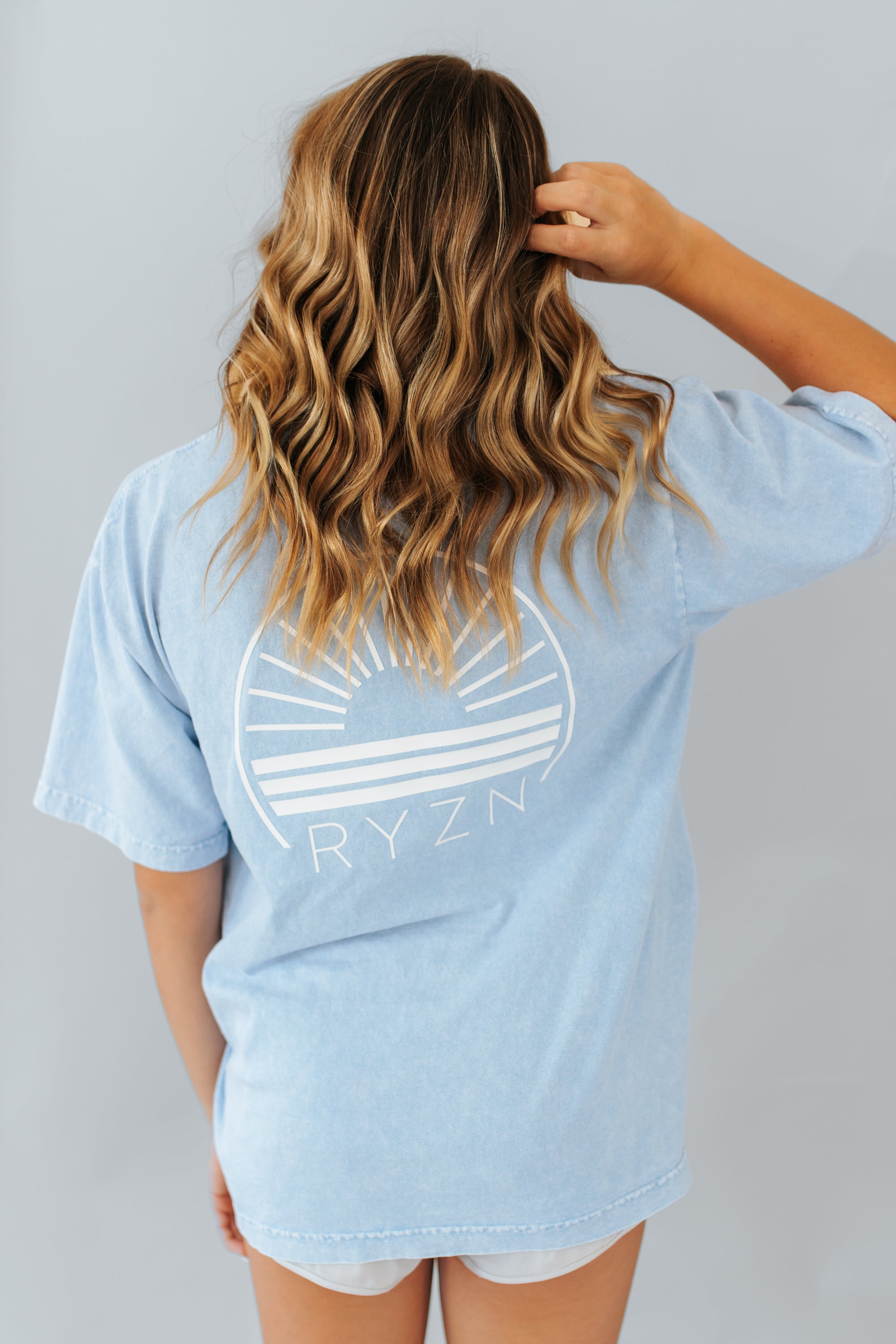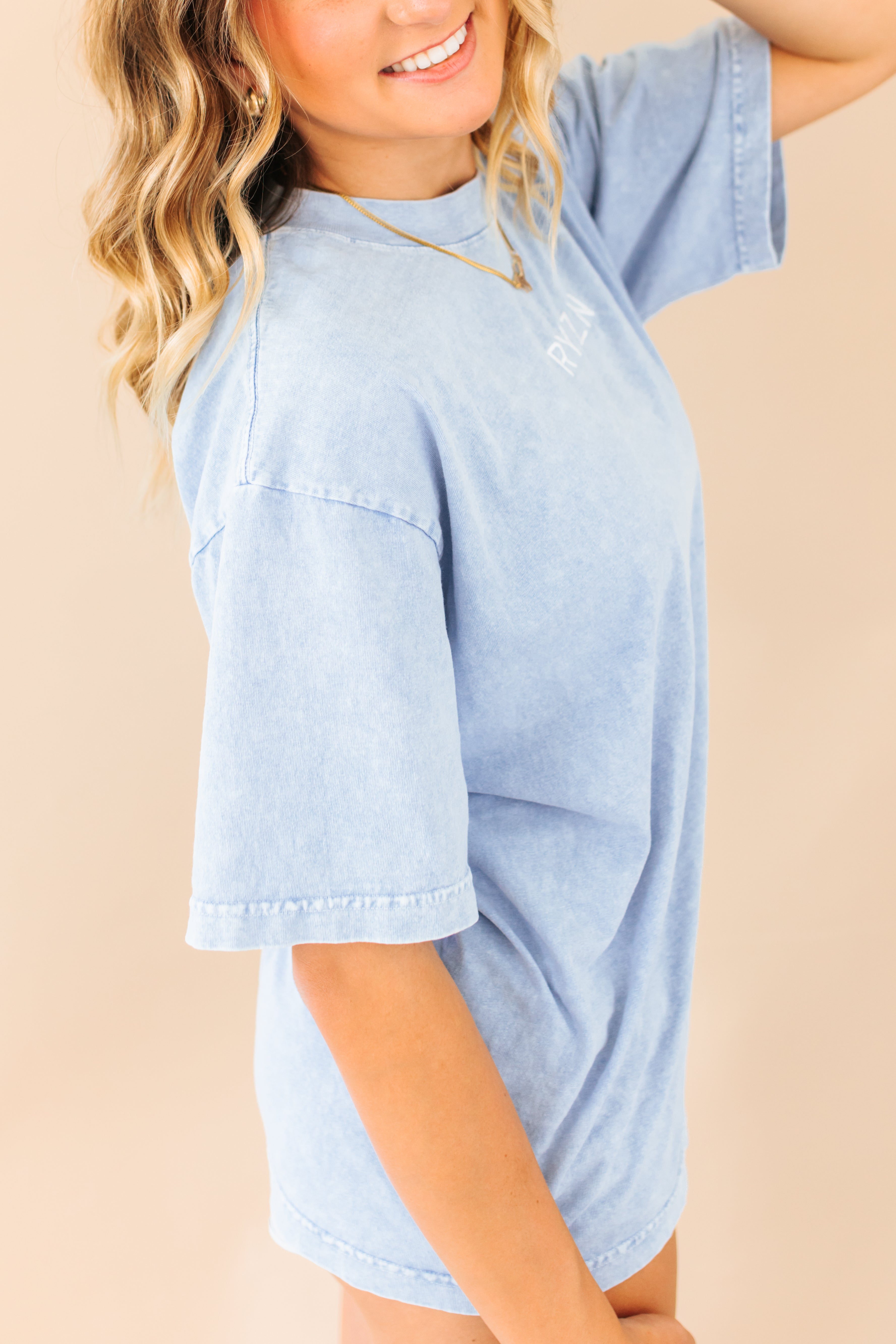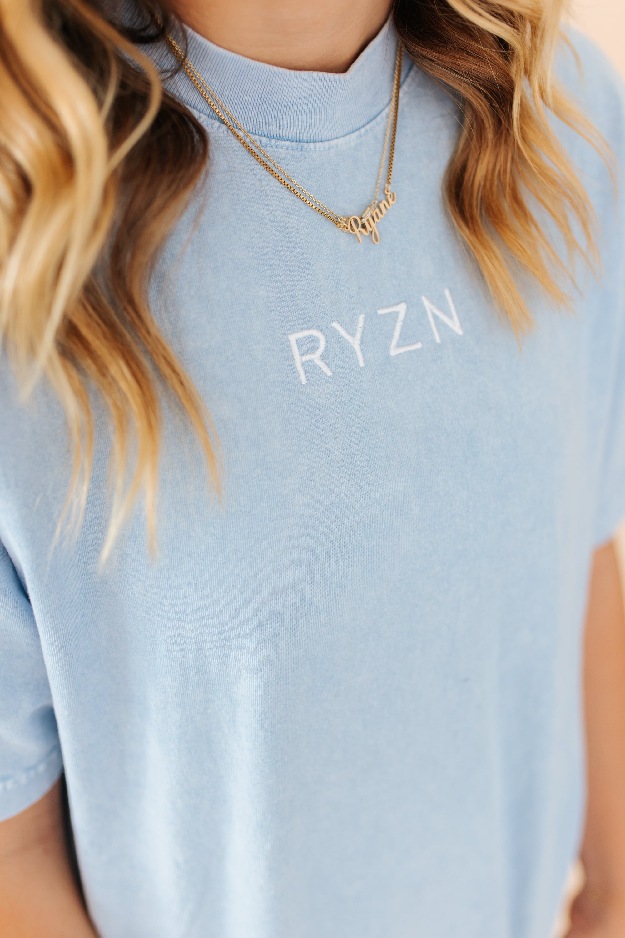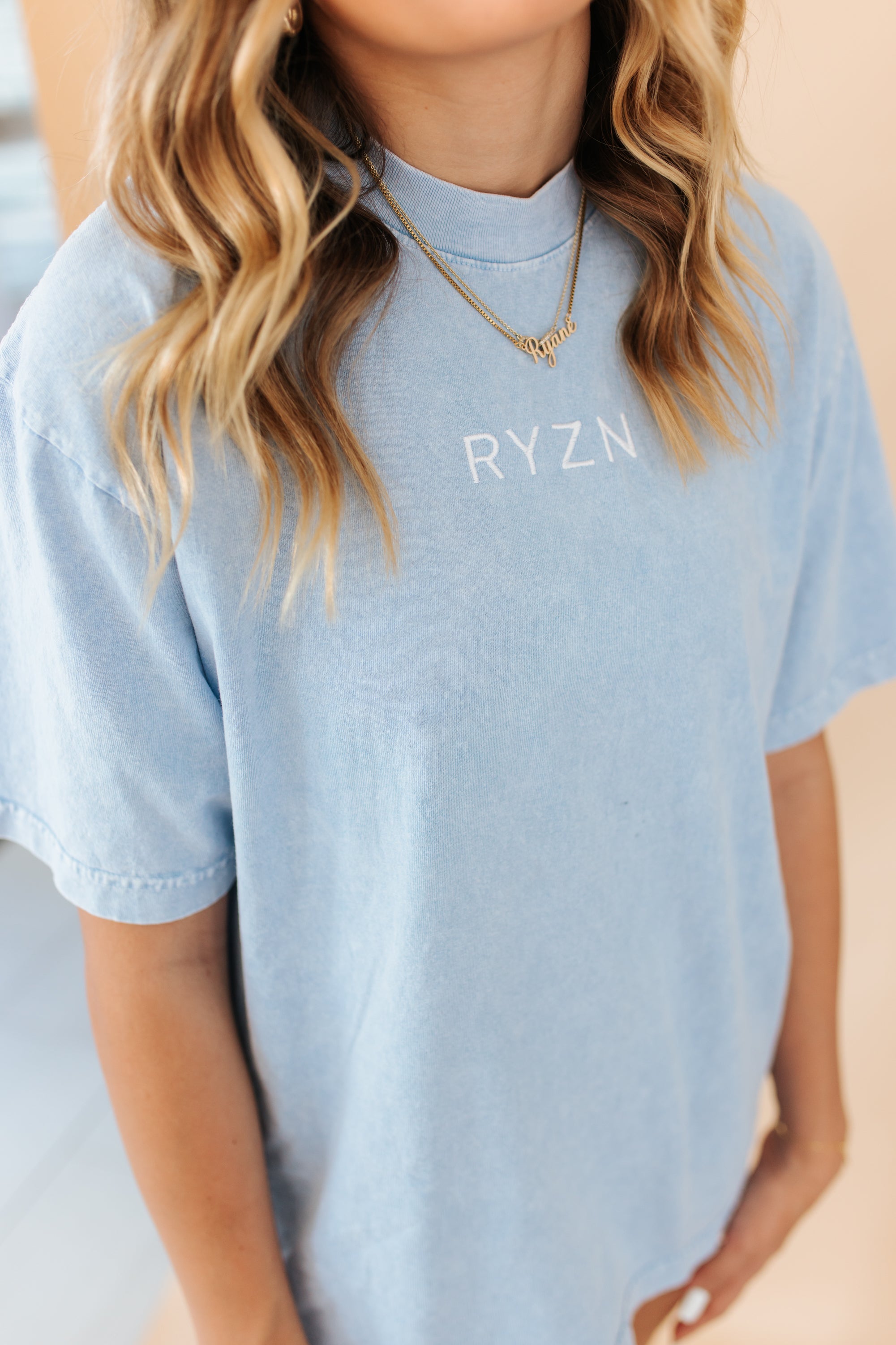 Your new go-to for effortless style and all-day comfort. This soft, premium cotton tee in a fresh sky blue wash features our minimalist RYZN logo for a clean look. Designed with a relaxed oversized fit.