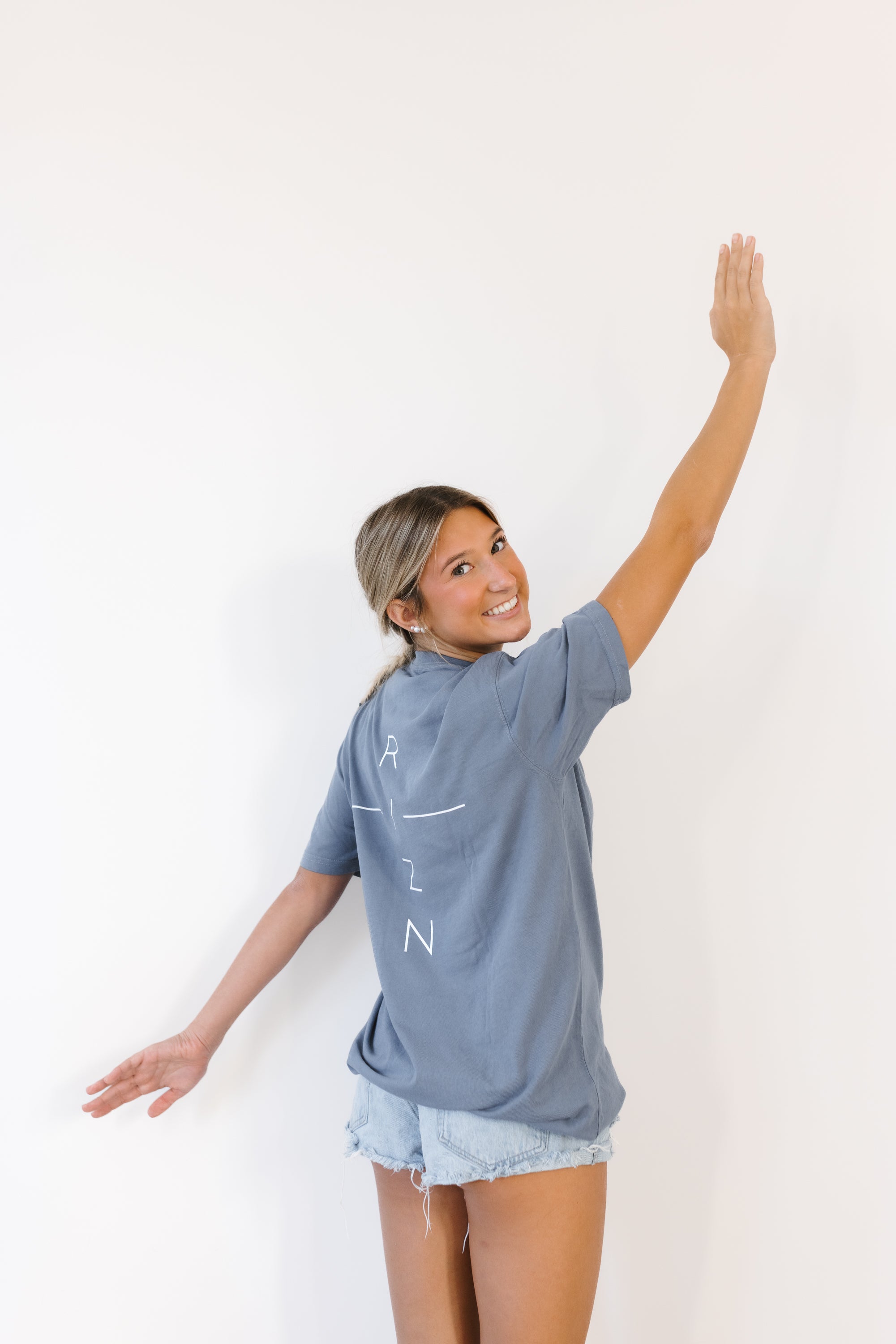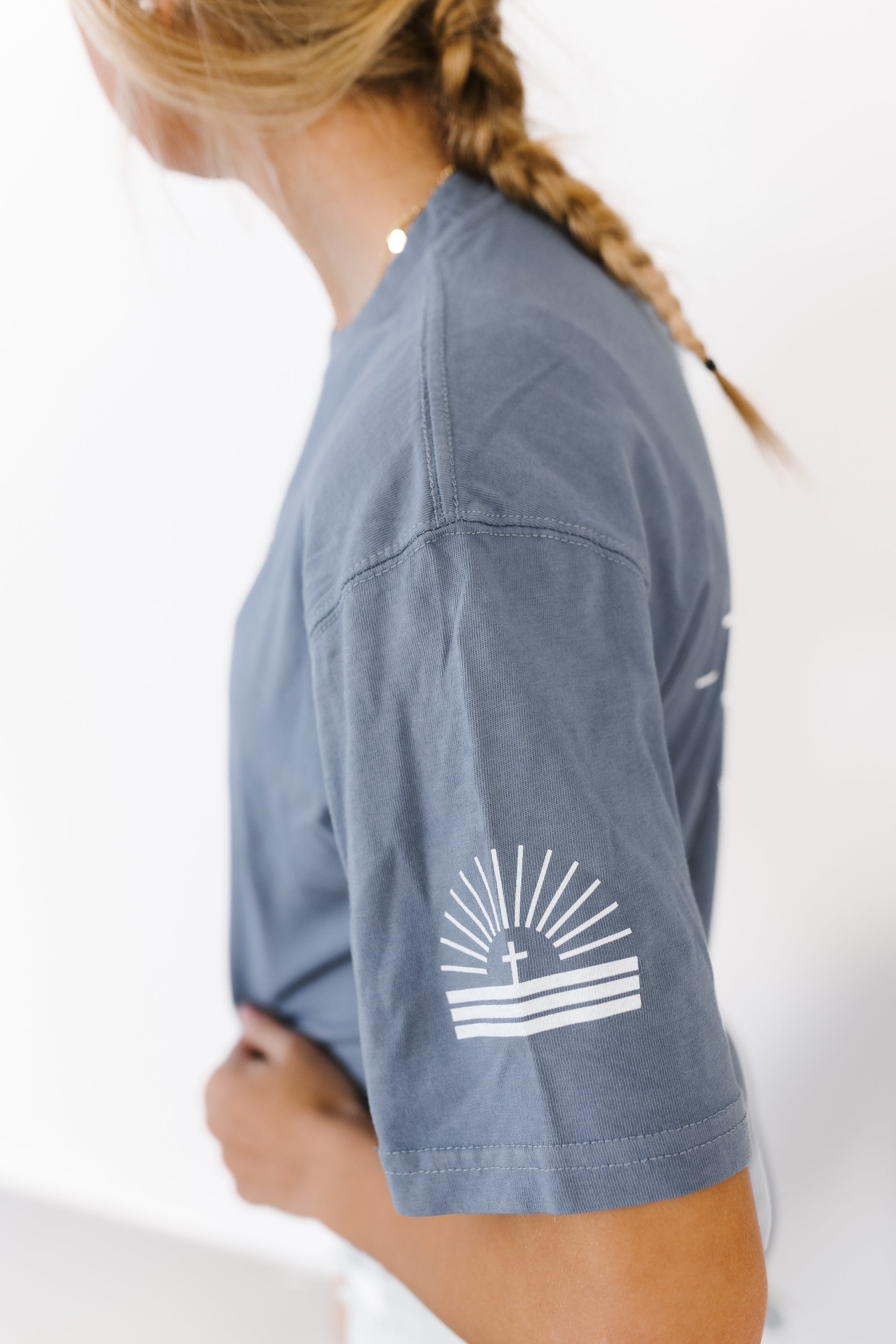 Vintage Dusty Blue Oversized Tee- part of the limited edition RYZN in Faith collection.